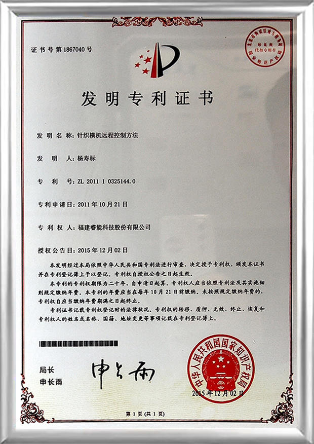 ● "Uusi korkean tehon neulekoneen tasainen neulekoneen tietokoneohjausjärjestelmä" voitti Kiinan tekstiiliteollisuuden liiton tiede- ja teknologiapalkinnon ensimmäisen palkinnon.