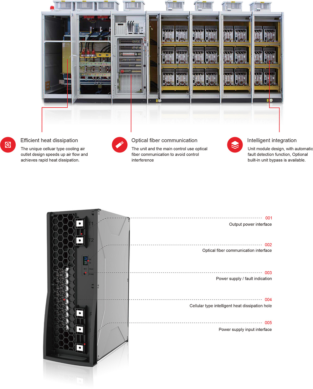 | Pääsuojaustoiminto | Ylijännite, ylivirta, oikosulku, ylikuumeneminen, valokuitu jne |